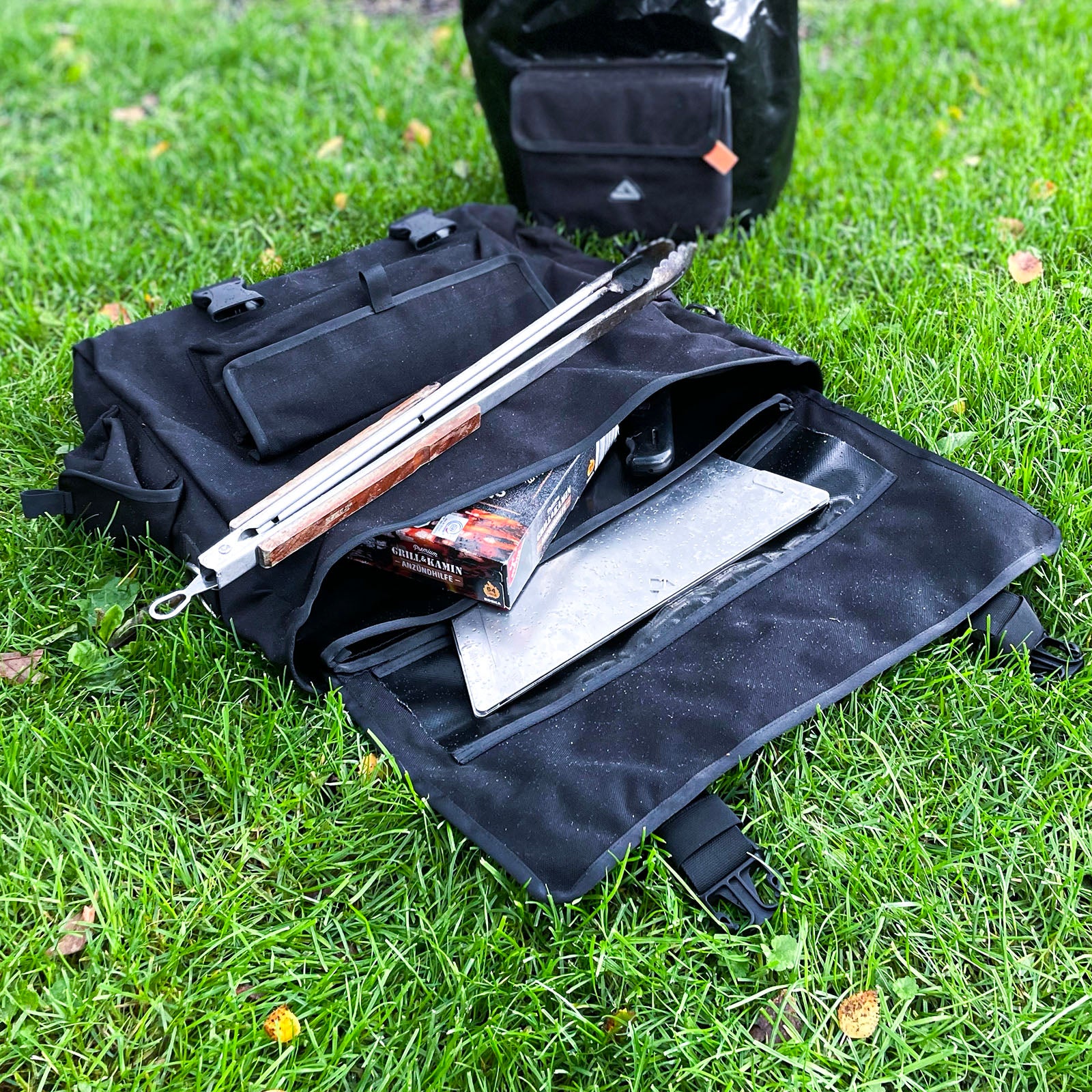 Die wasserabweisende Planentasche ist mittels Klettleiste in der Tasche fixiert, sie kann einfach aus der Equipment Bag herausgenommen und solo verwendet werden. So kann auch ein dreckiger Grill verstaut werden, ohne dass die Tasche dreckig wird.