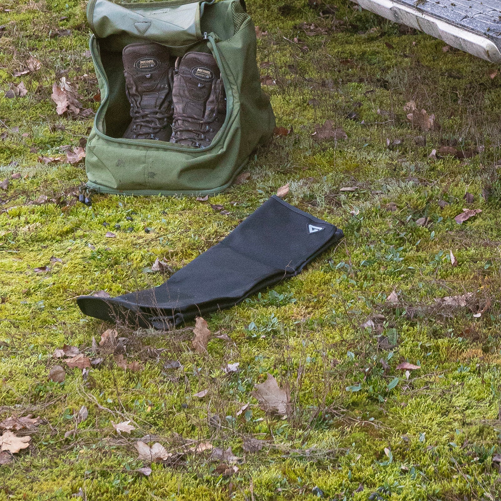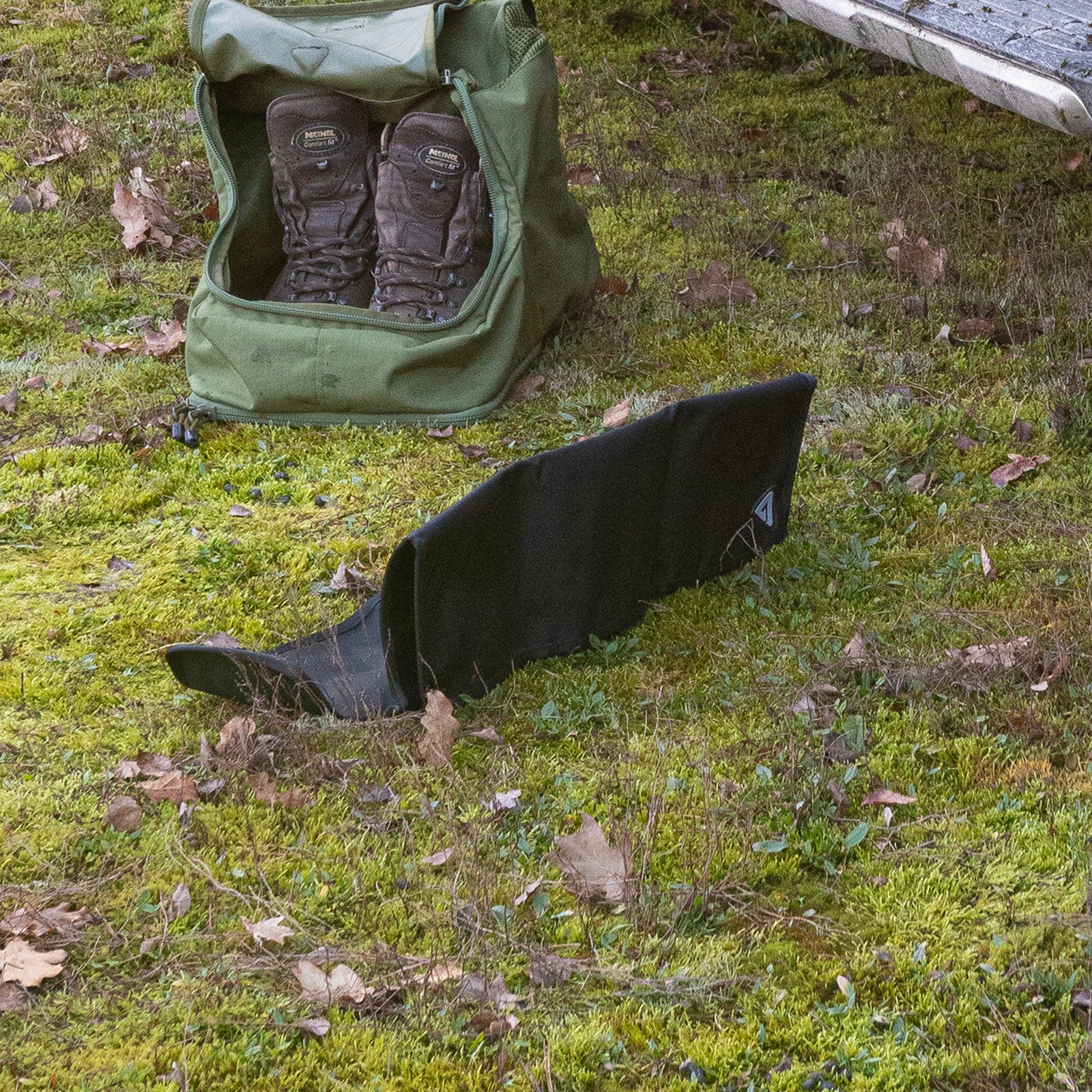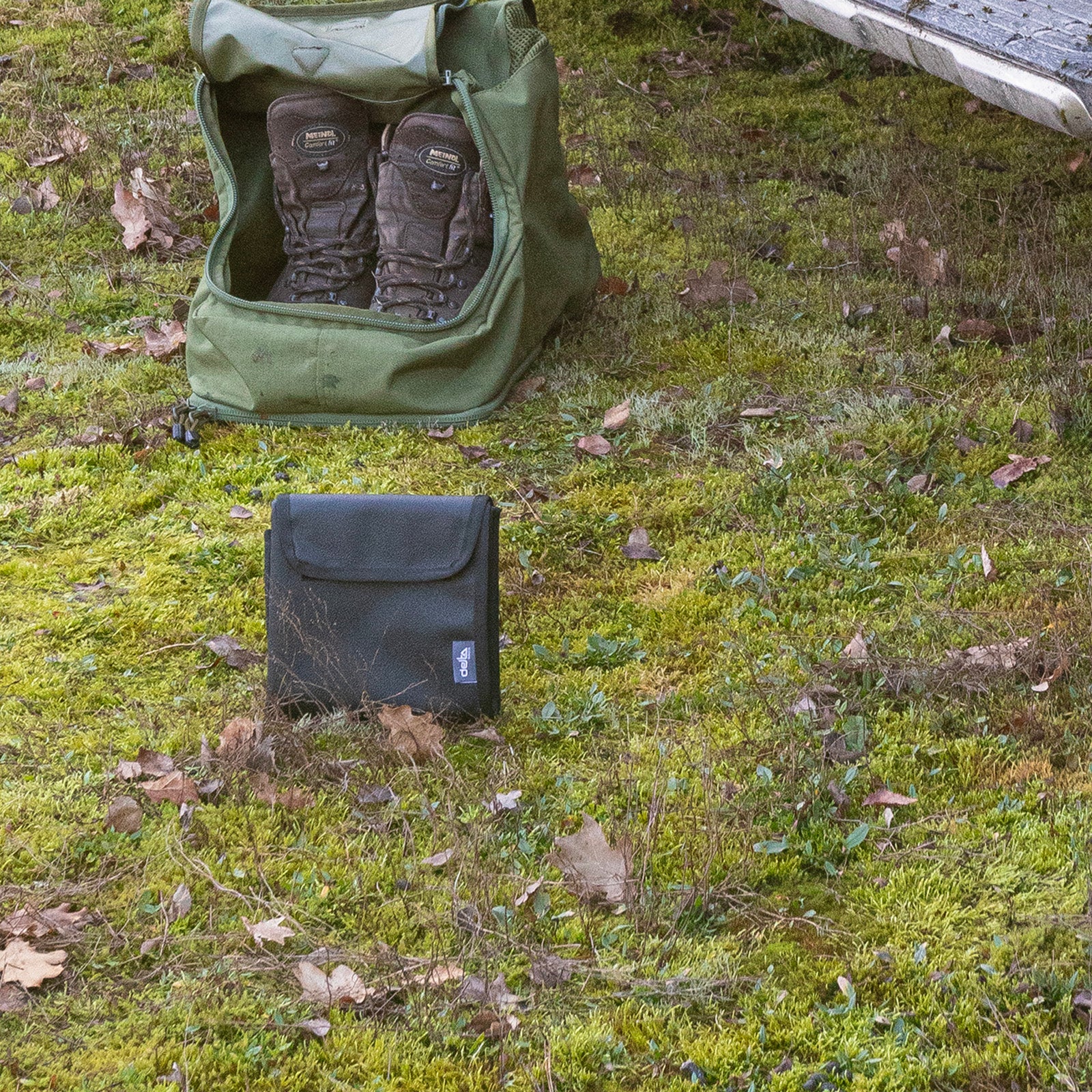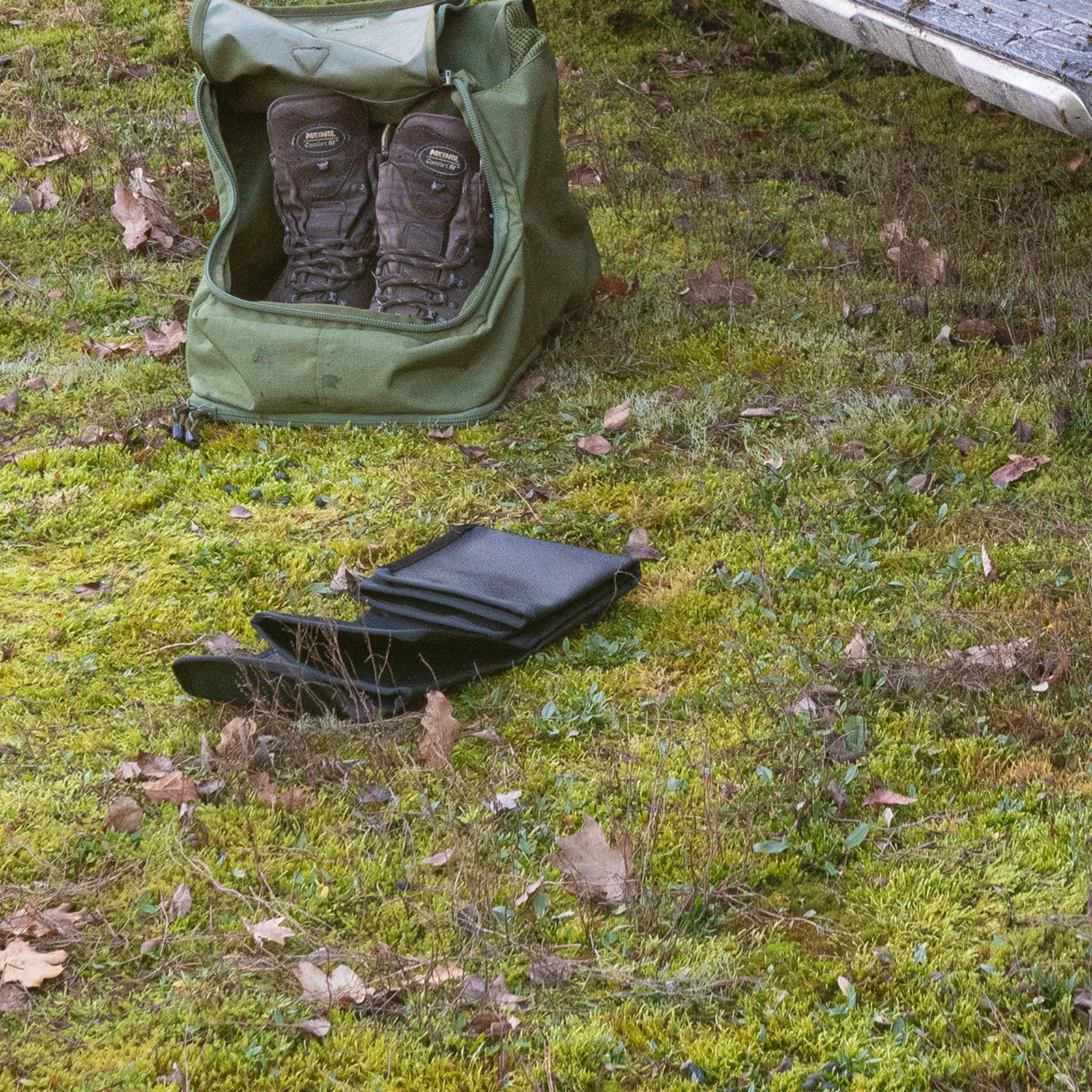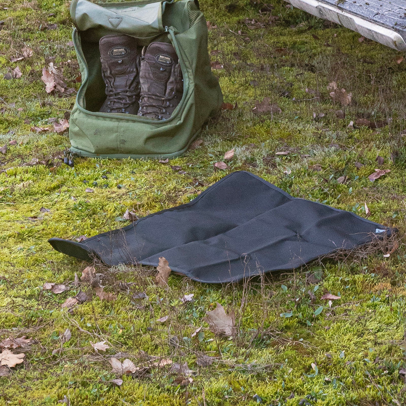 Faltbare Unterlage für das Wechseln von Schuhwerk und Socken.