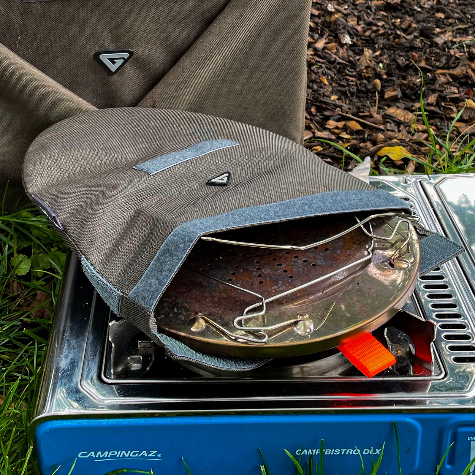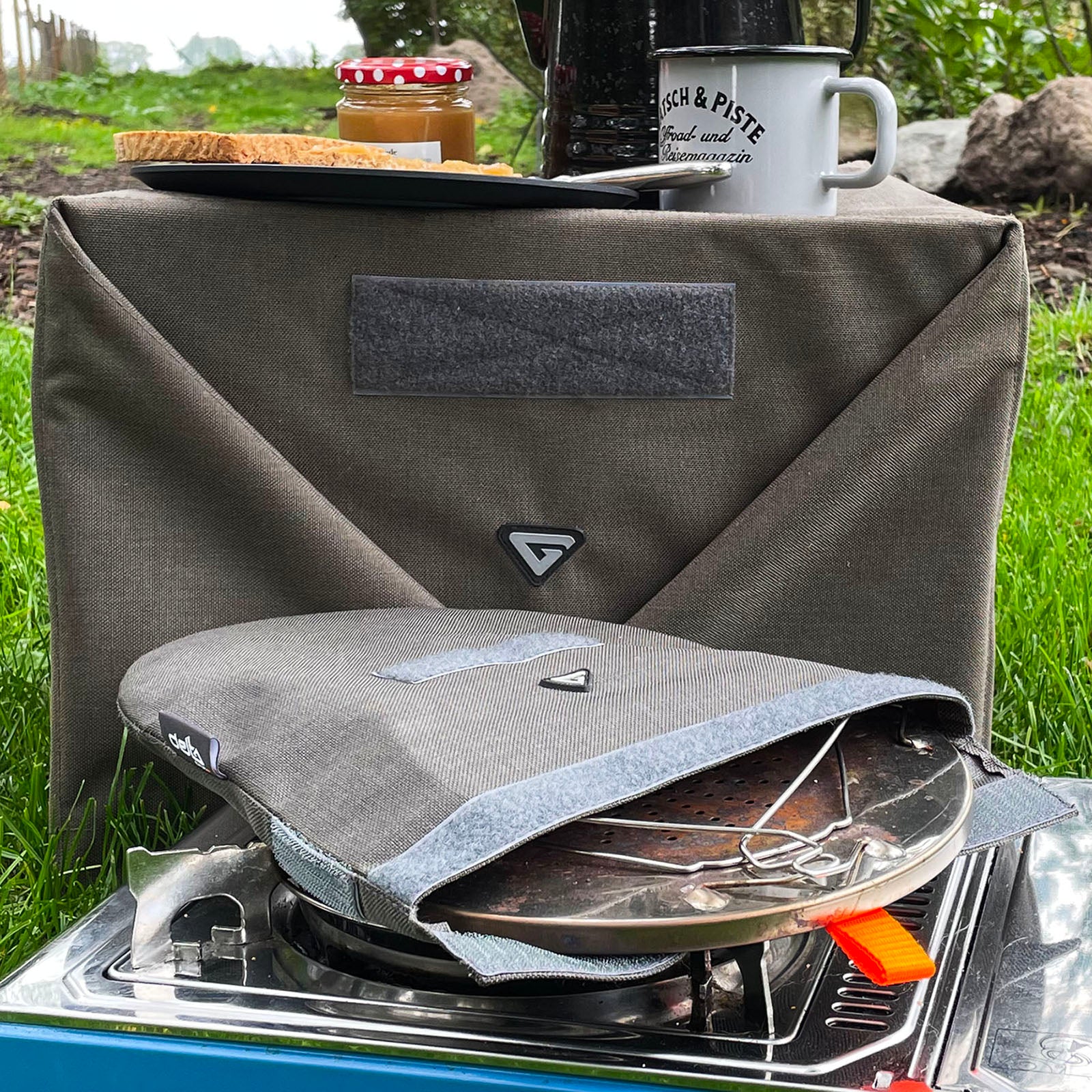 Passende Einschubtasche mit Klettverschluss in D-Form für den Camping Toaster Aufsatz.