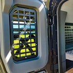 Die passgenauen M.O.L.L.E. Panels für die Scheiben in den Hecktüren des INEOS Grenadier Laderaums, bieten auf einfache Weise Schutz für die Fenster. Ebenfalls ermöglichen sie es, eine Vielzahl von Zubehör, delta BAGS und weitere Tools am Gitter einzufädeln.