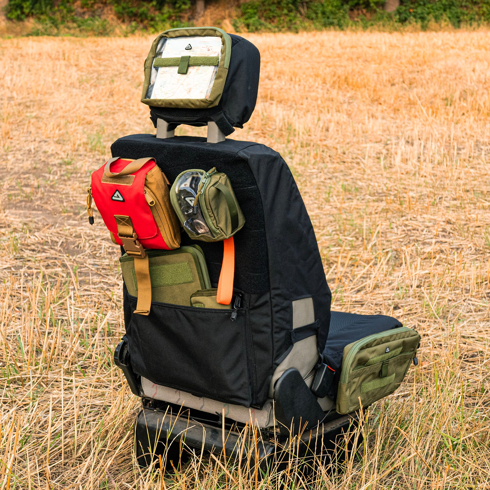 Der Seat Cover bietet vielfache Möglichkeiten, verschiedene Ausrüstungsgegenstände griffbereit zu verstauen.