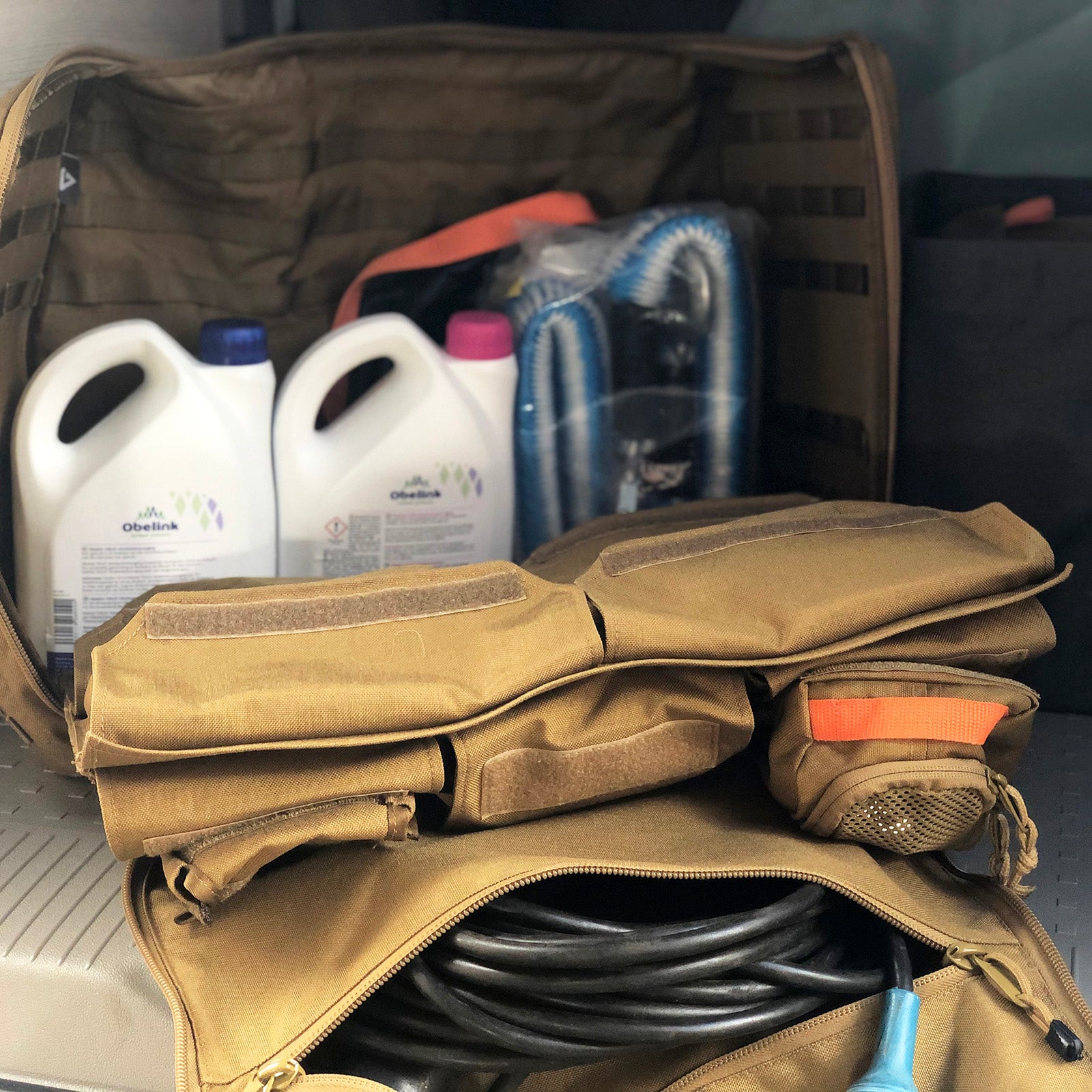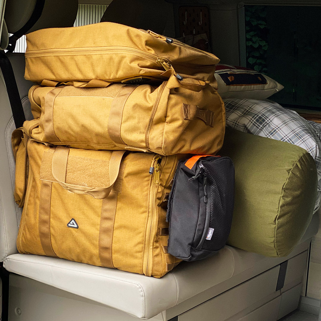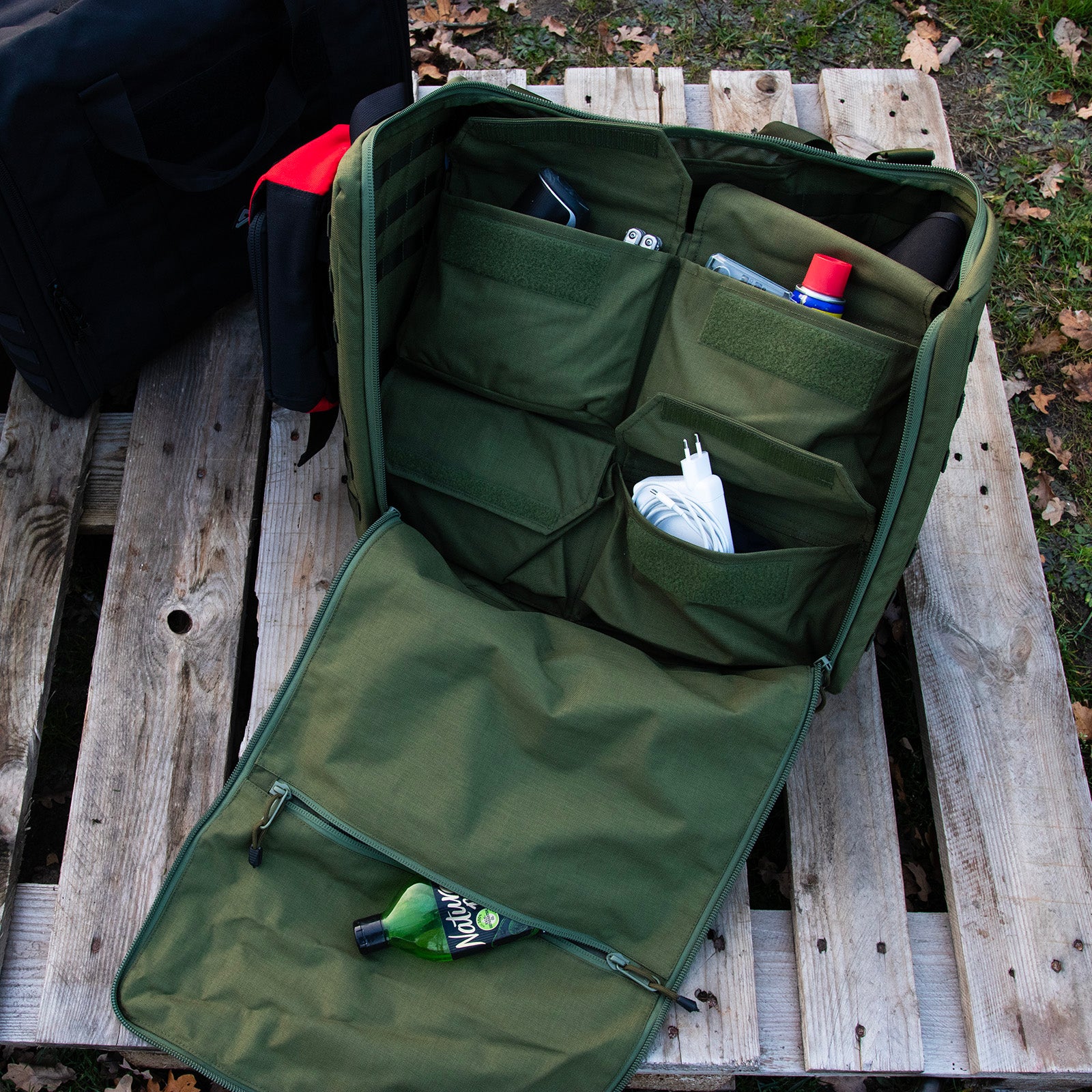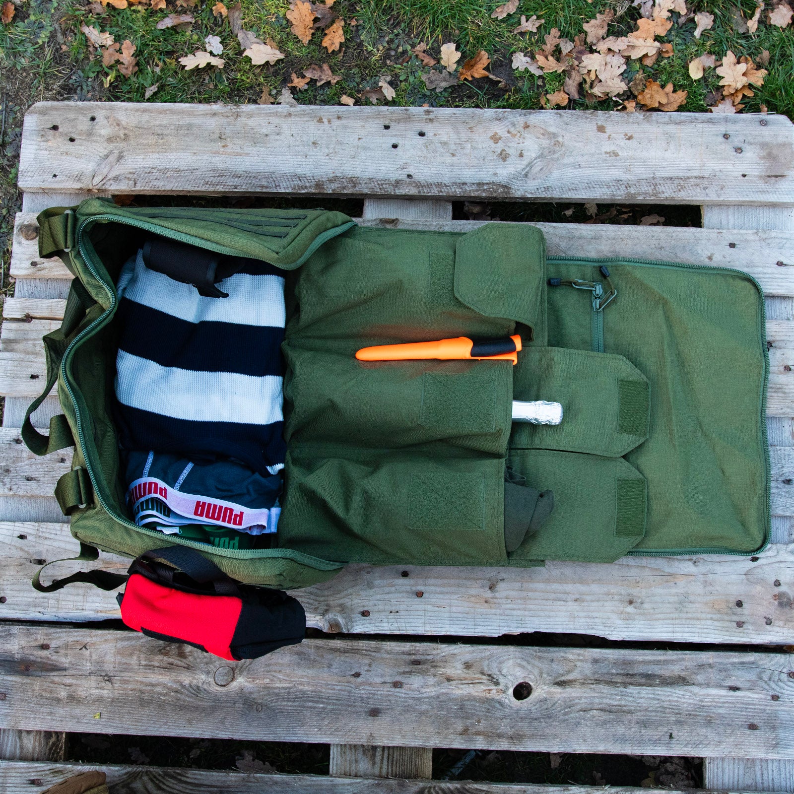 Using the top coverbag, everything can be packed easily. The bag panels keep the items organized. In addition, the TYRS (Molle) mounting system allows to add more bags.