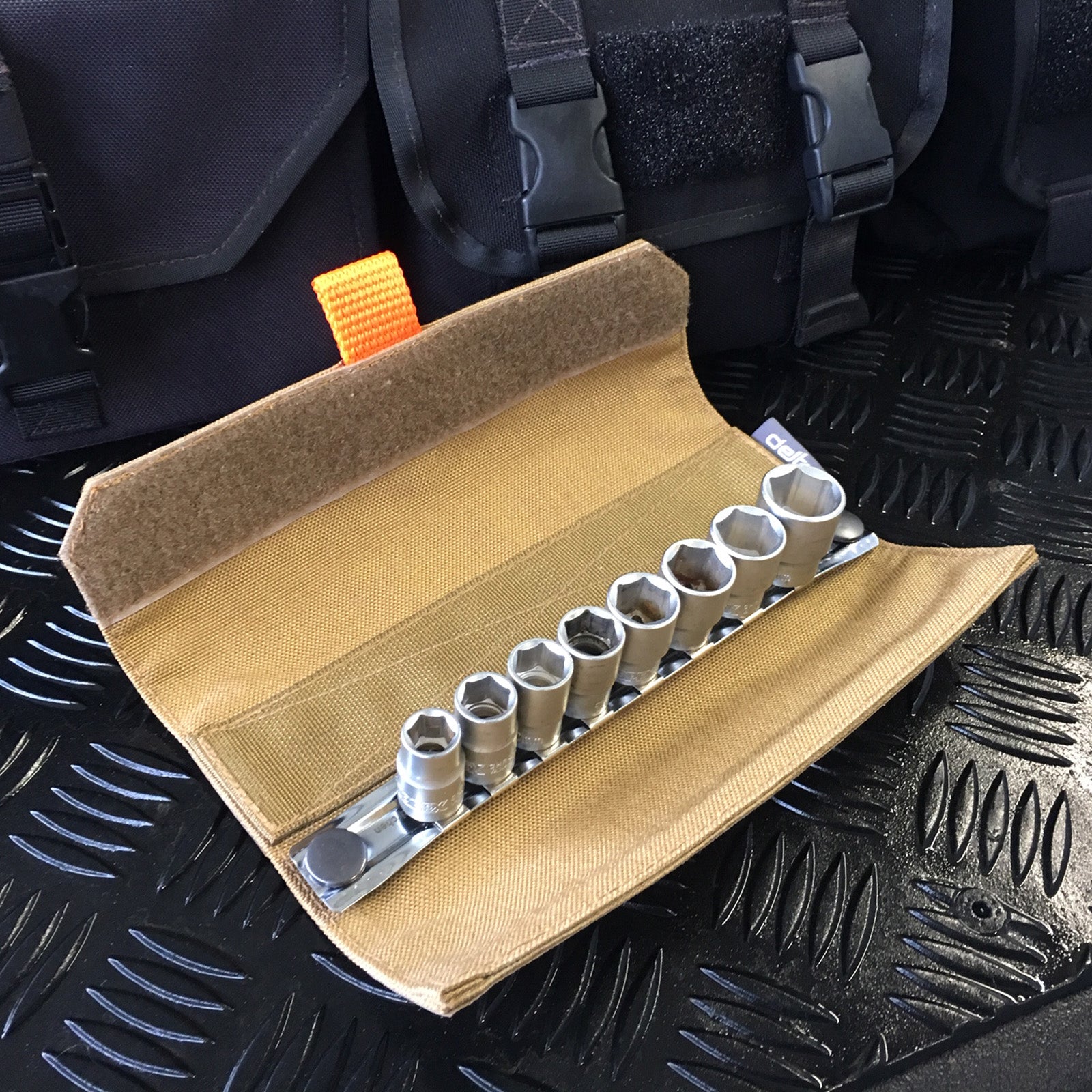 The Tool Nut Holder is a protection bag allowing 7 tool nuts, sorted by size to be transported without shifting.