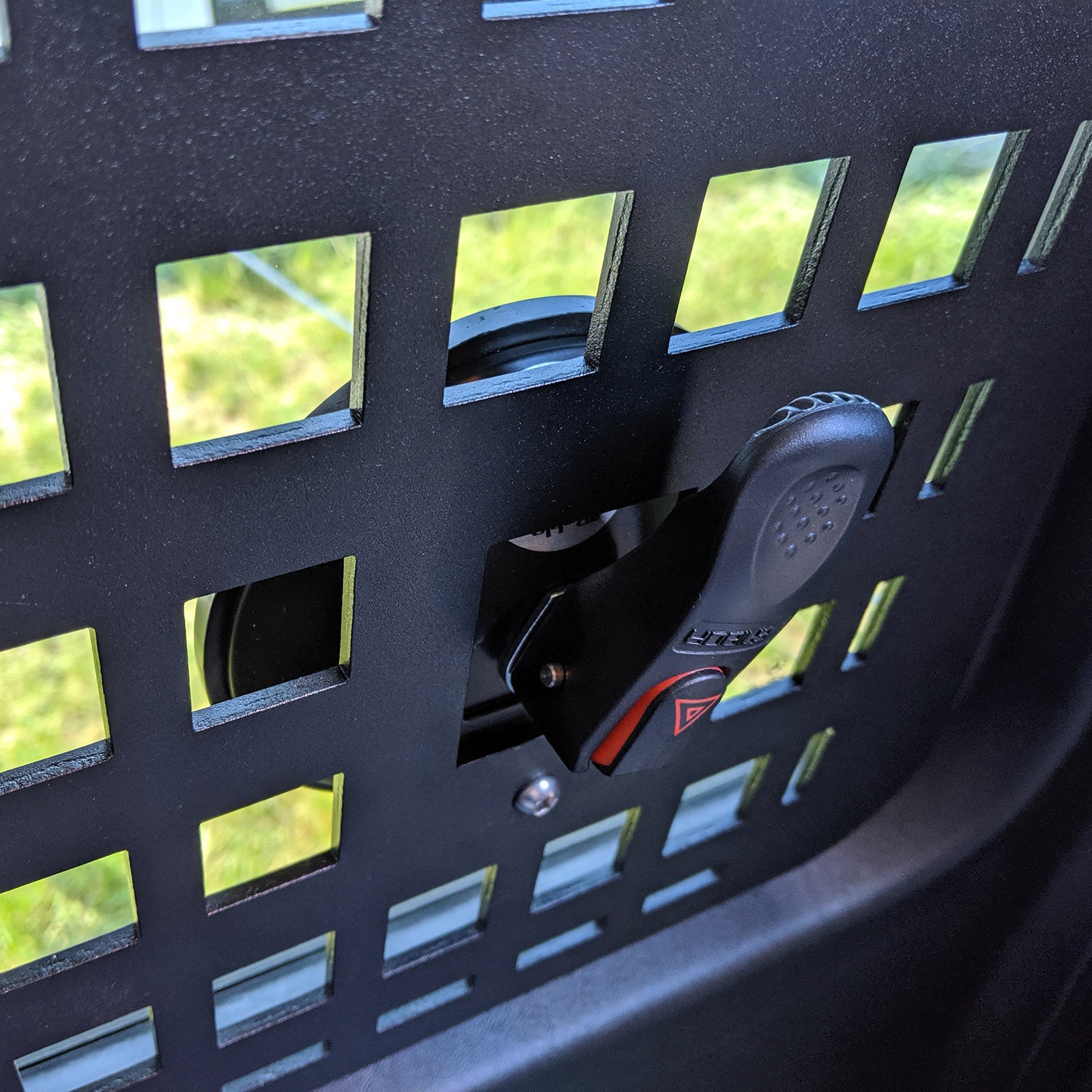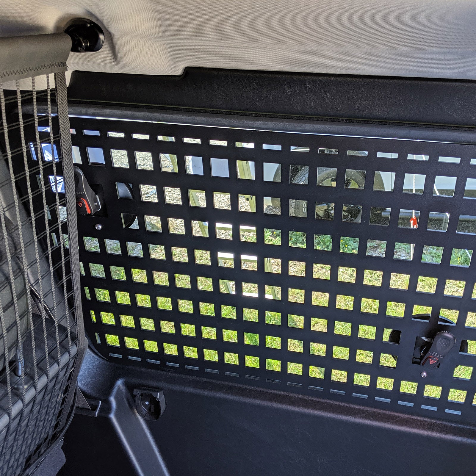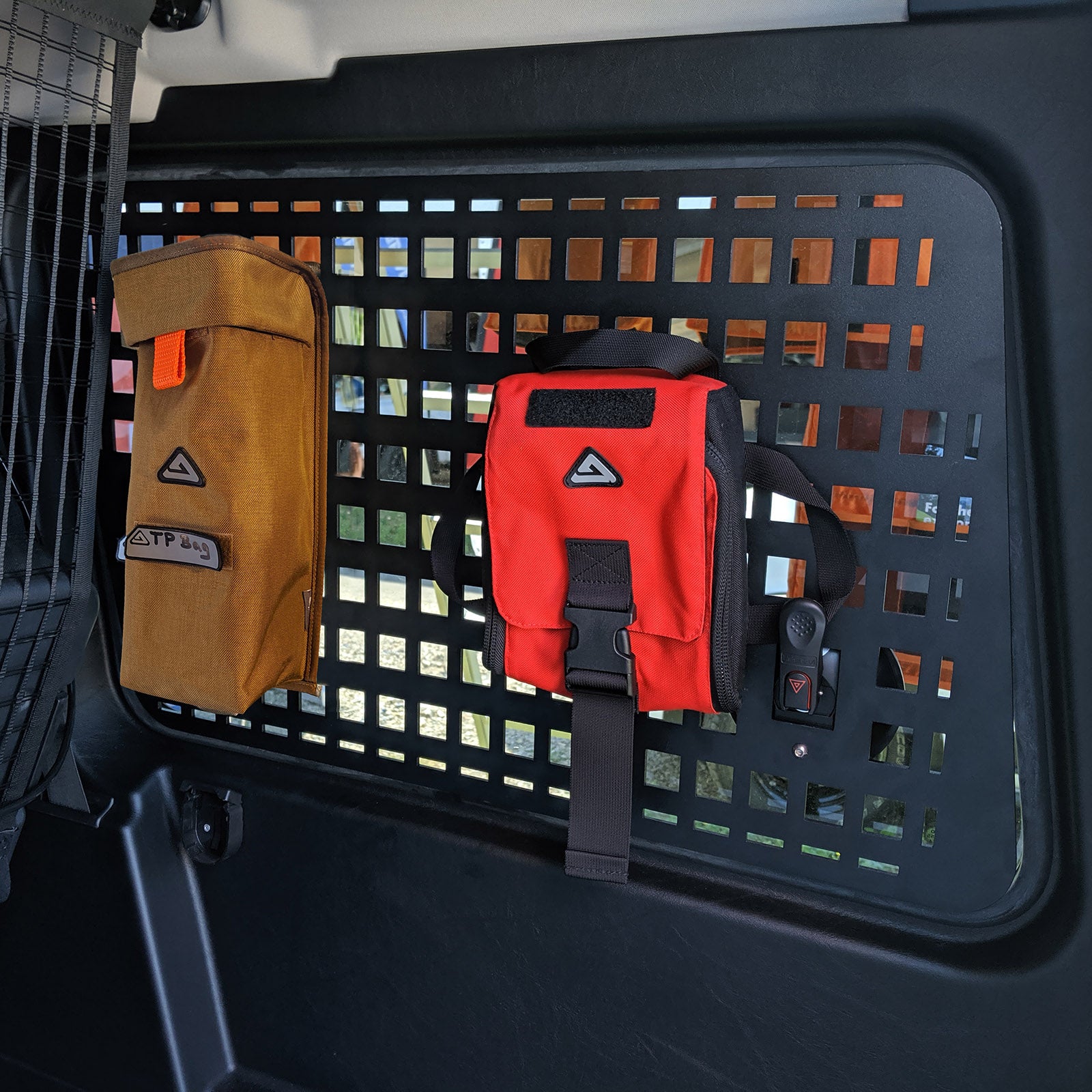 The Windows Inside Panel System 2.0 is a panel attached to the Inside of your vehicle window with industry grade suction cups. Using our TYRS (Molle) strap system, you can mount a variety of bags to the IPS 2.0. You can fully take advantage of the storage space in the rear of your vehicle.
