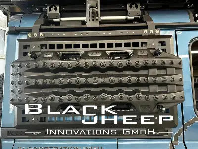 Dieser M.O.L.L.E. Seitenträger wird an der Original-Reling sowie an den unteren, außenliegenden Utensilienleisten des Grenadiers befestigt. Es ist hierfür nicht erforderlich, in das Fahrzeug zu bohren.