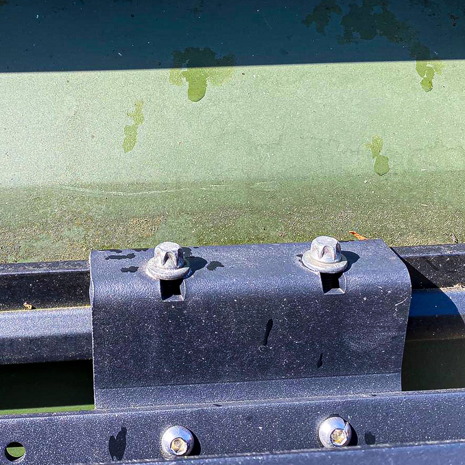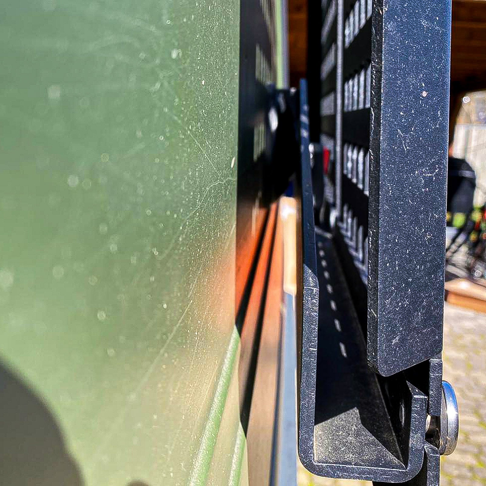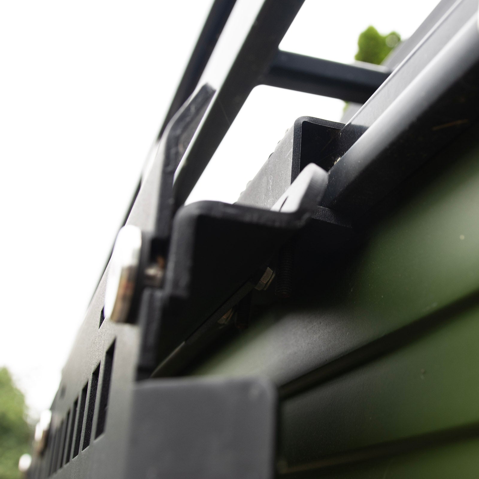 In the upper part, the OPS 2.0 is hooked to the railing of the vehicle and fastened with the pressure plate.