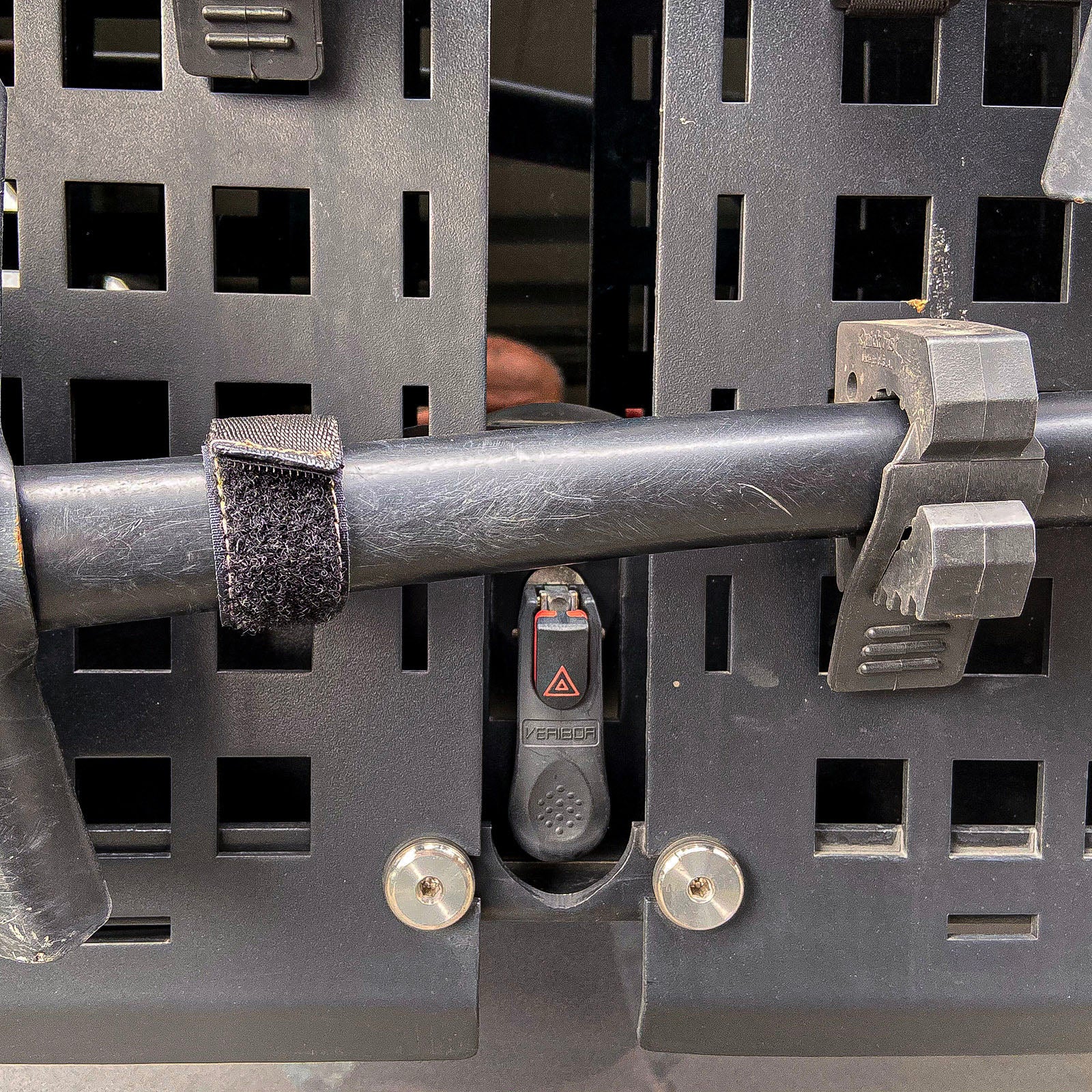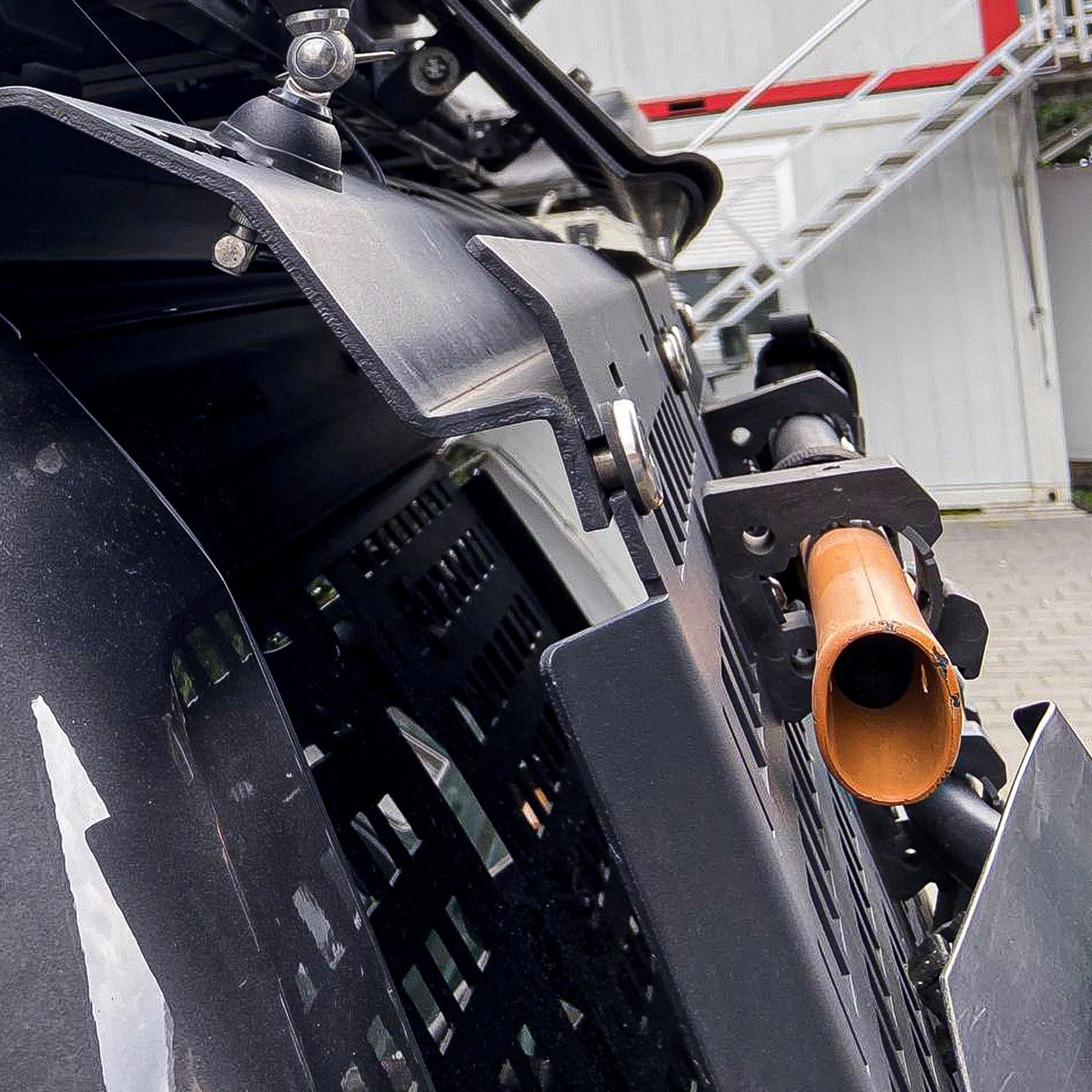 In the upper part, the OPS 2.0 is hooked to the railing of the vehicle and fastened with the pressure plate.