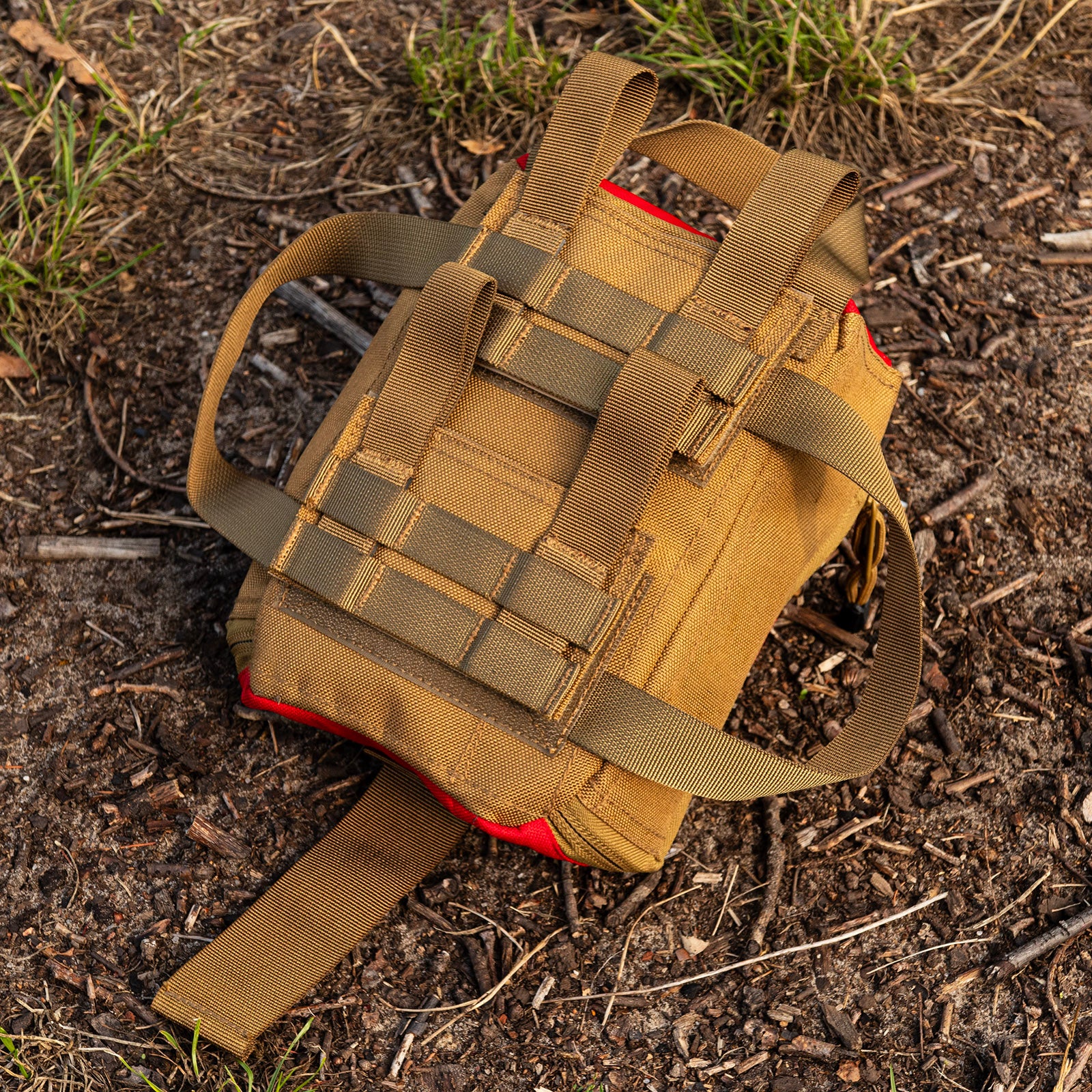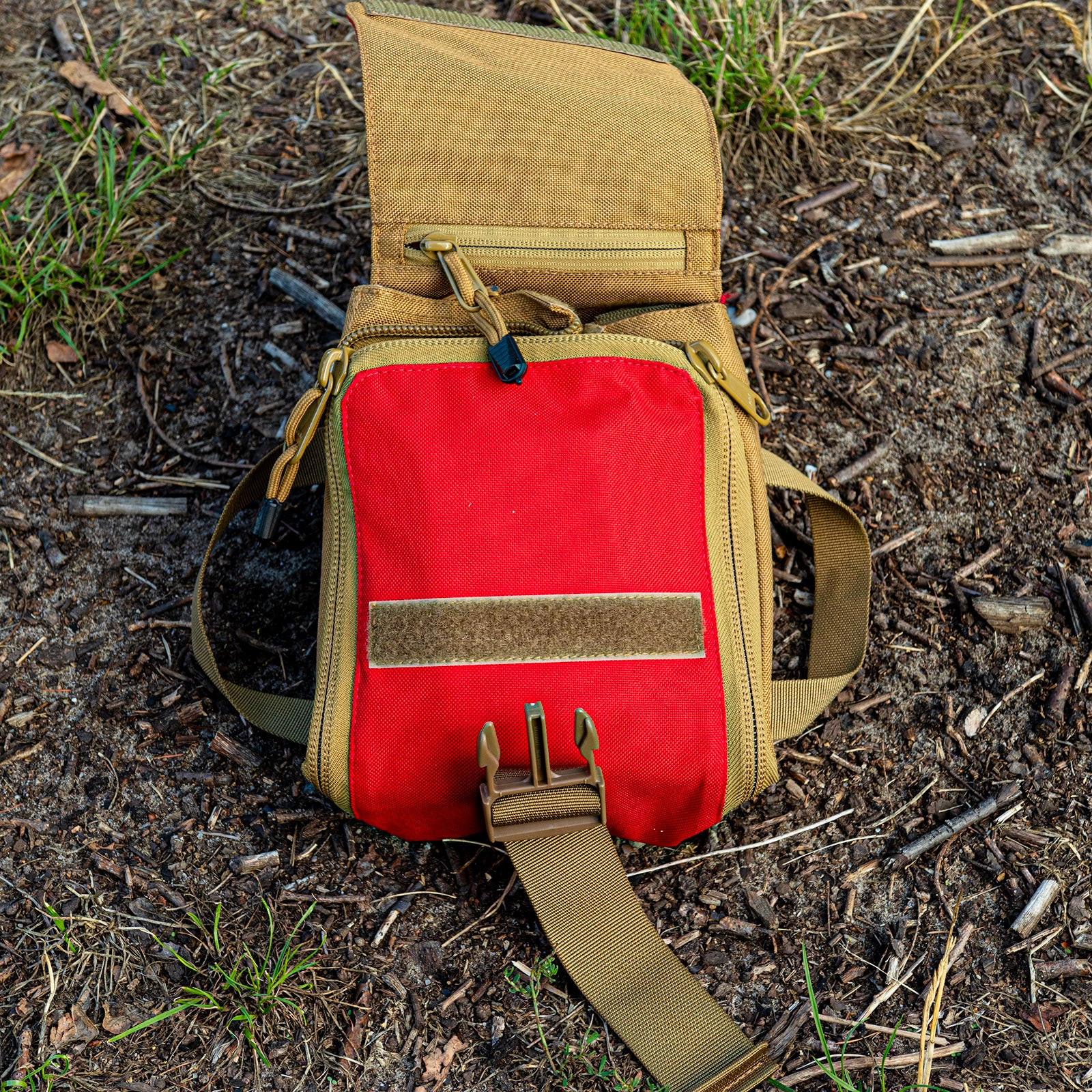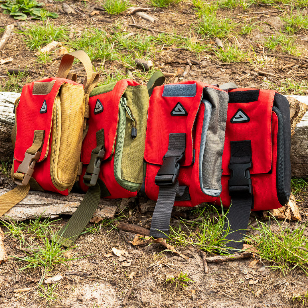 Using the Velcro area on the back, the Medic Bag can be mounted to the Seat Cover, the Inside Panel or any larger delta bag.  Using the included TYRS (Molle) adapter, the Medic Bag can also fastened to the Inside Cage or BS Bag.