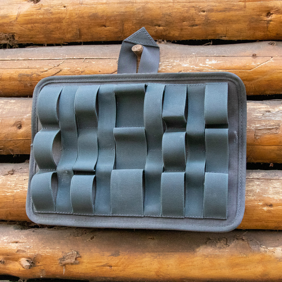 The Adapter Plate for the Sponge Bag is an extension for the left inner pocket. It is created in the same way, adding to the options to secure items with elastic straps and is fastened to the Sponge Bag with Velcro.