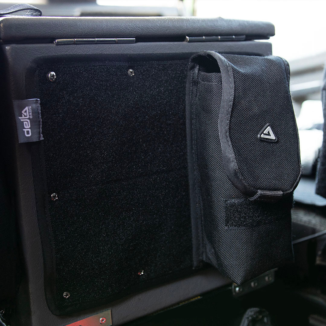 Velcro panel for attachment to the back of the Cubby Box of the Land Rover Defender.