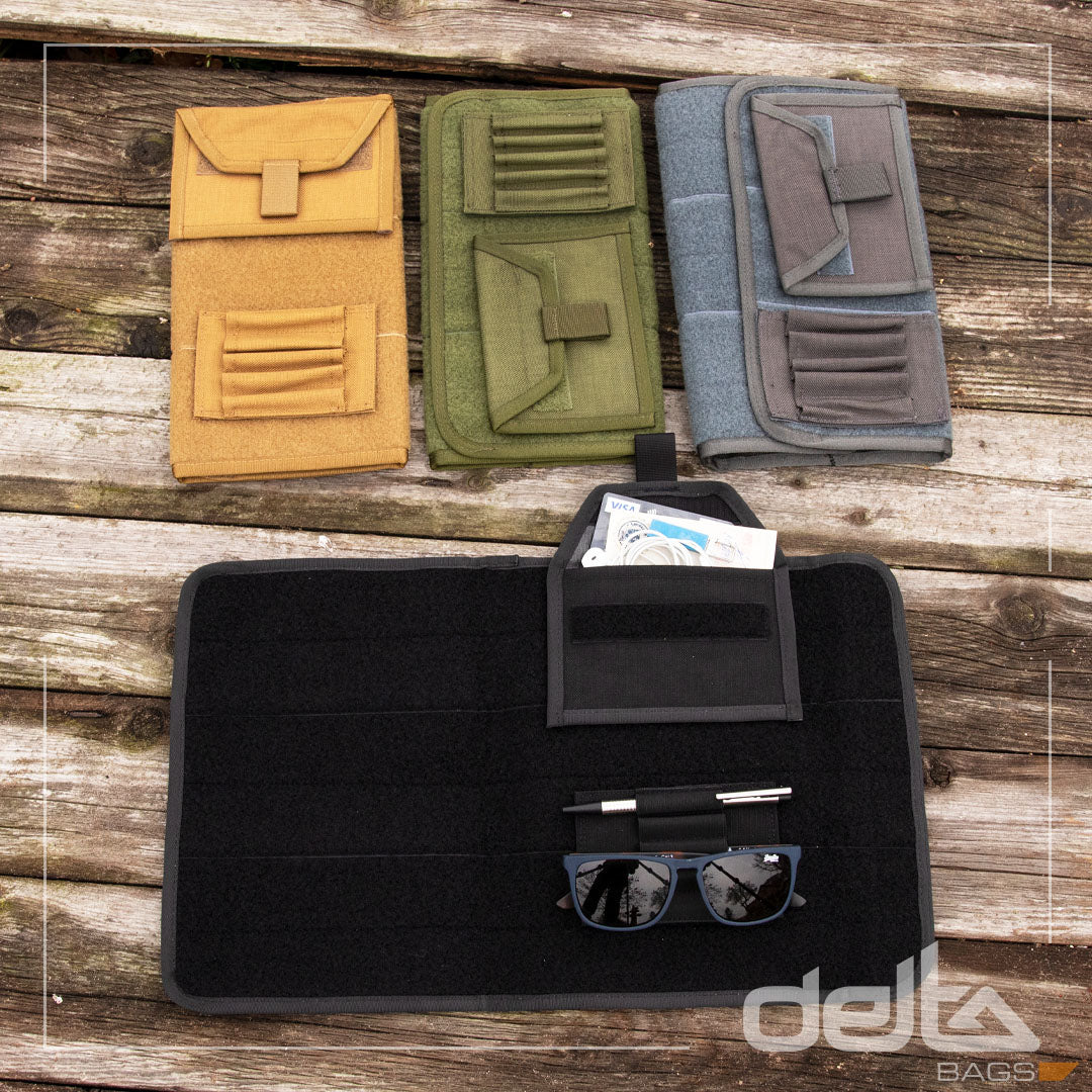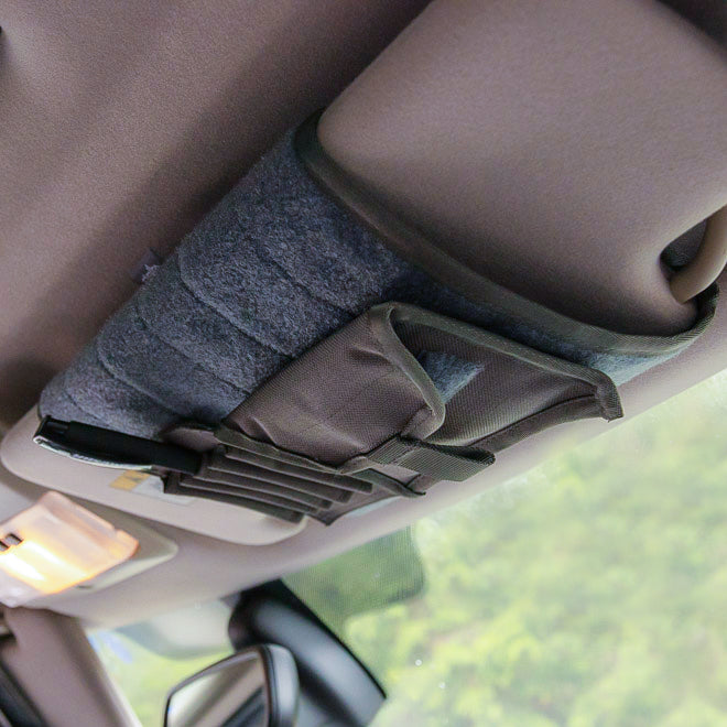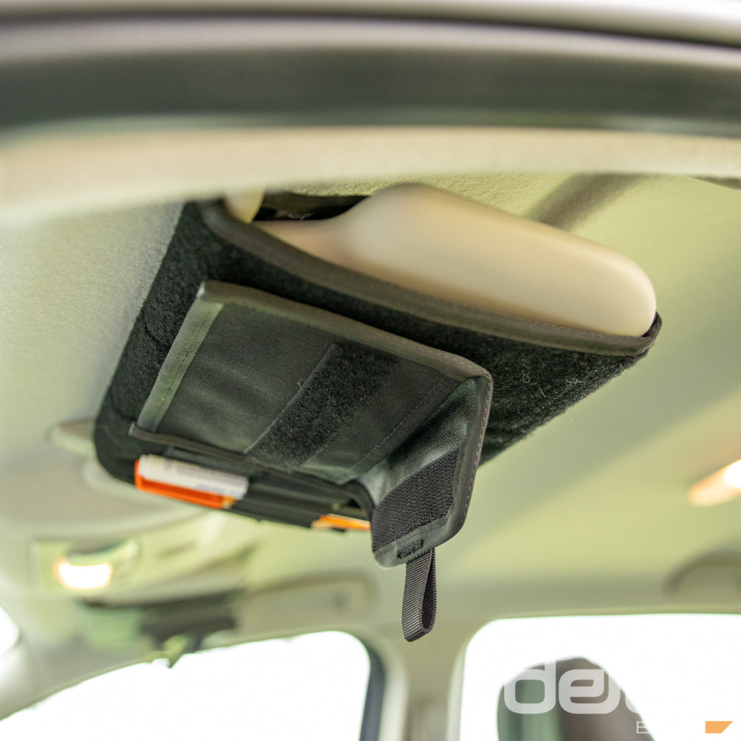 Das Lens Hood Panel ermöglicht das schnelle Verstauen von Dokumenten, Schreibgeräten, Notizblock, Parkscheibe, Landkarten uvm. Der mitgelieferte Stifthalter kann diverse Schreibgeräte aufnehmen. Fahrzeugpapiere finden in der kleinen Aufbewahrungstasche Platz.
