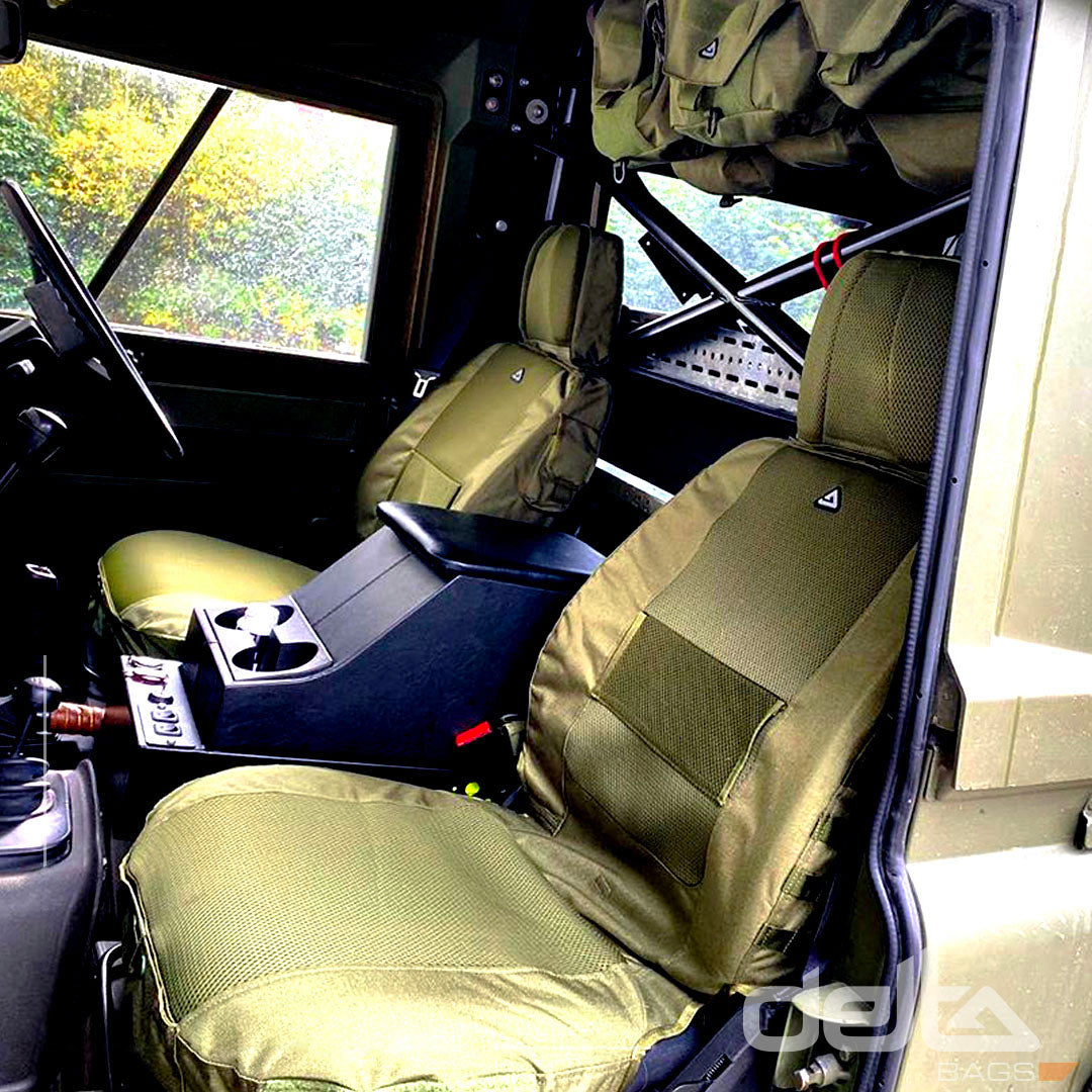 Der Driver Seat Cover ist ein maßgeschneiderter Schonbezug für den Fahrersitz des Land Rover Defender TD4 (Seriensitz).