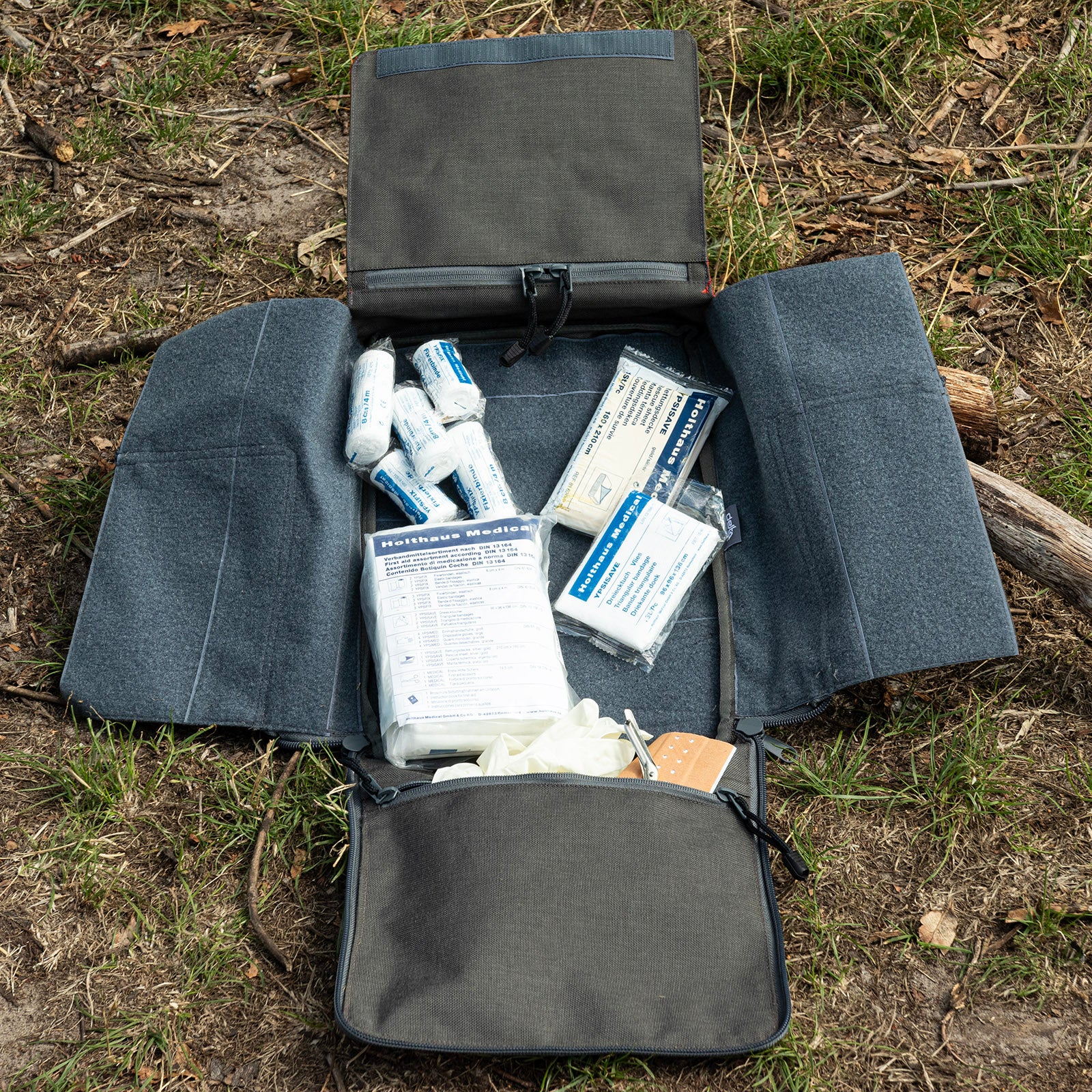 Die Medic Bag kann komplett geöffnet werden, sodass der Inhalt schnell griffbereit ist. Der Tascheninhalt kann bedarfsorientiert zusammengestellt werden.